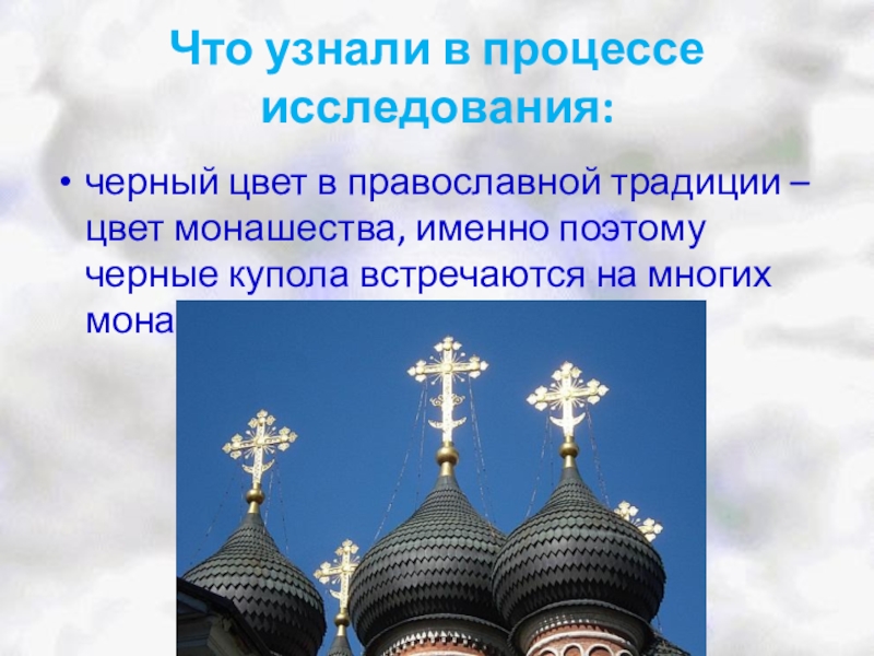 монашества, именно поэтому черные купола встречаются на многих монастырях.