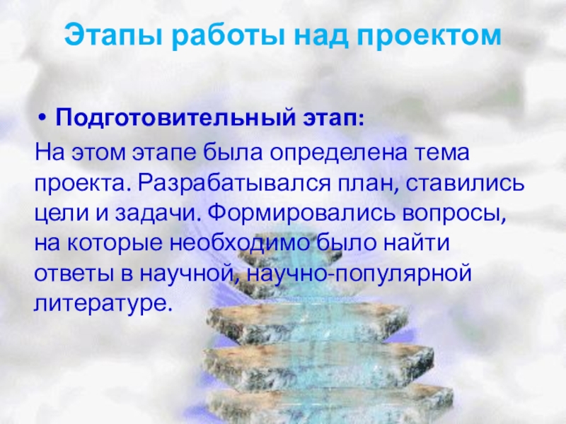 Разрабатывался план, ставились цели и задачи. Формировались вопросы, на которые необходимо было найти ответы в научной, научно-популярной литературе.