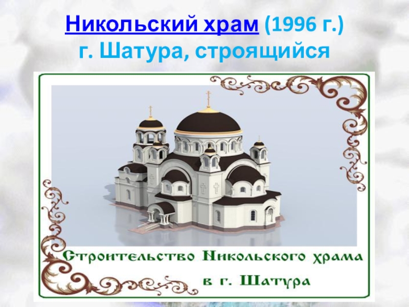 Слайд 39Никольский храм (1996 г.) г. Шатура, строящийся