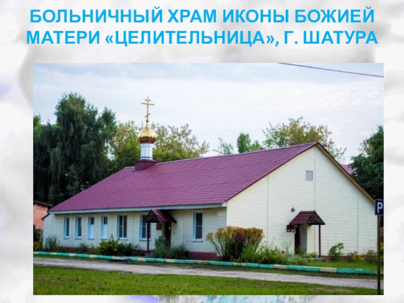 Слайд 43БОЛЬНИЧНЫЙ ХРАМ ИКОНЫ БОЖИЕЙ МАТЕРИ «ЦЕЛИТЕЛЬНИЦА», Г. ШАТУРА