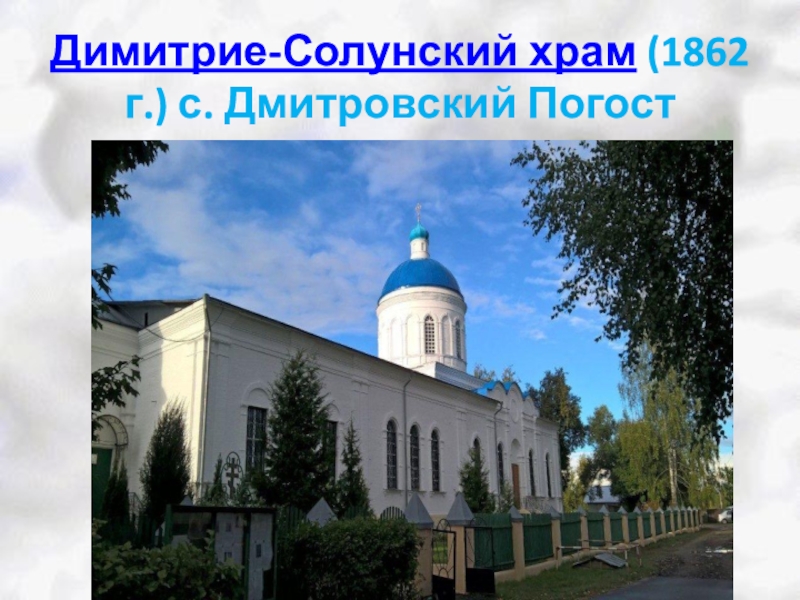 Слайд 25Димитрие-Солунский храм (1862 г.) с. Дмитровский Погост