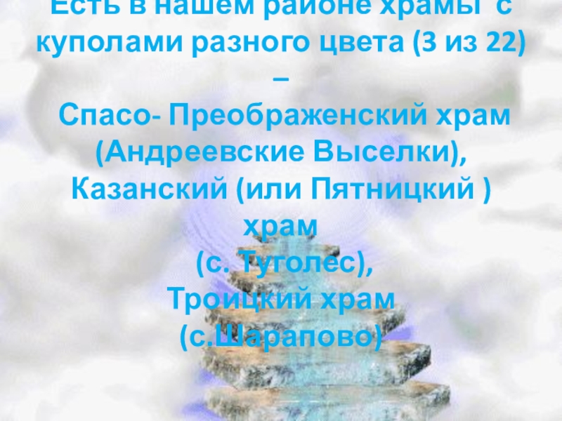 Слайд 20Есть в нашем районе храмы с куполами разного цвета (3 из