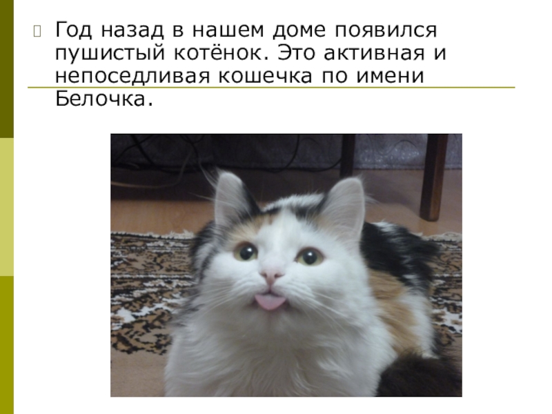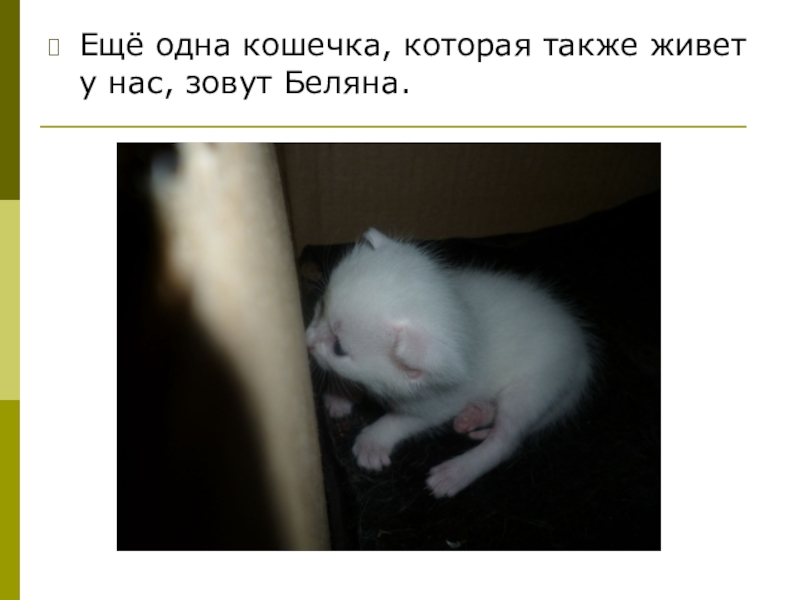 Ещё одна кошечка, которая также живет у нас, зовут Беляна.
