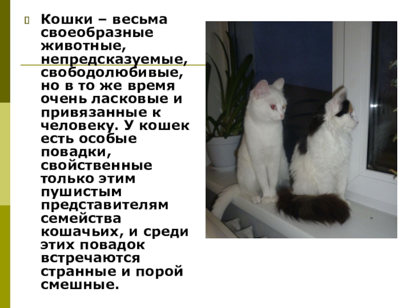 Кошки – весьма своеобразные животные, непредсказуемые, свободолюбивые, но в то же