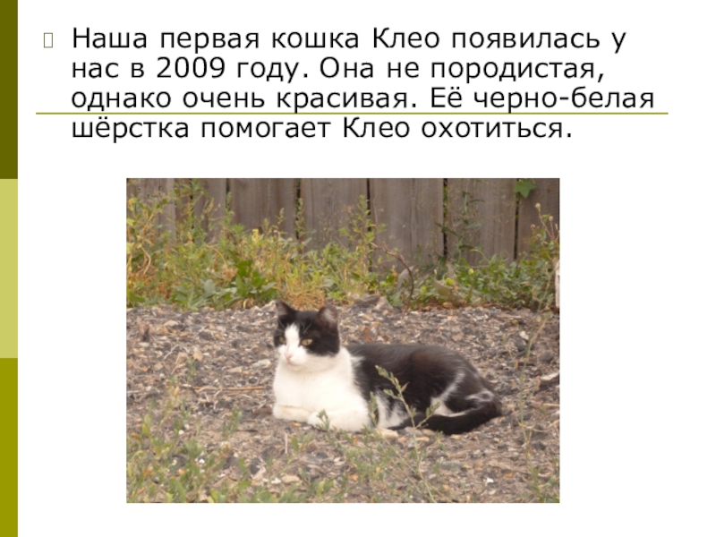 Наша первая кошка Клео появилась у нас в 2009 году. Она