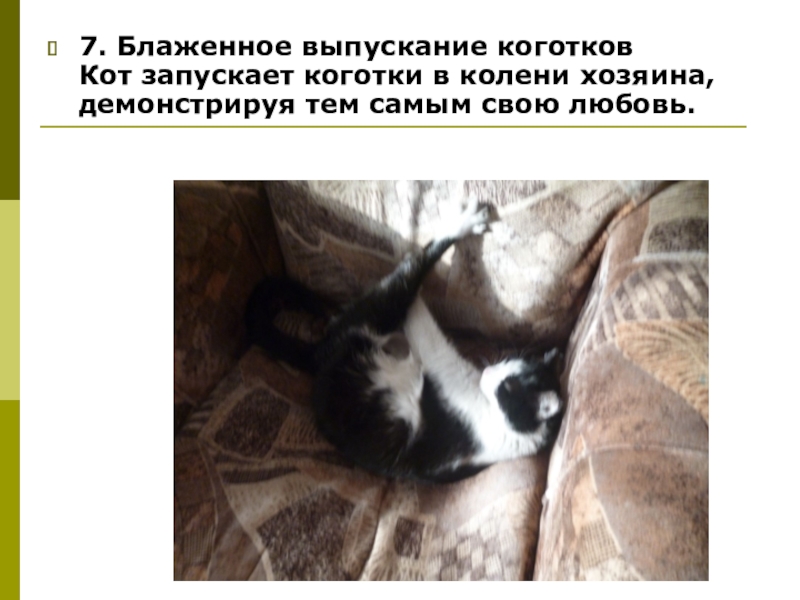 Кот запускает коготки в колени хозяина, демонстрируя тем