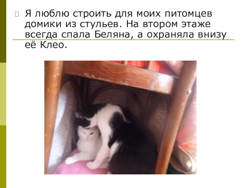 Я люблю строить для моих питомцев домики из стульев. На втором