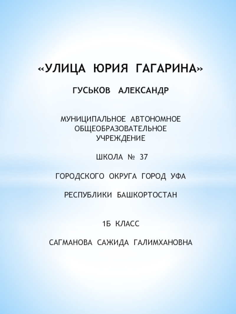 «УЛИЦА ЮРИЯ ГАГАРИНА»