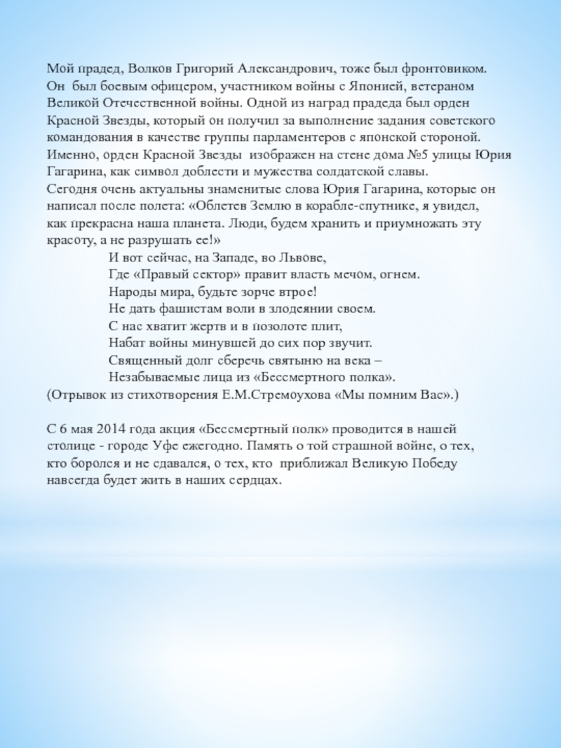 Слайд 10Мой прадед, Волков Григорий Александрович, тоже был фронтовиком.