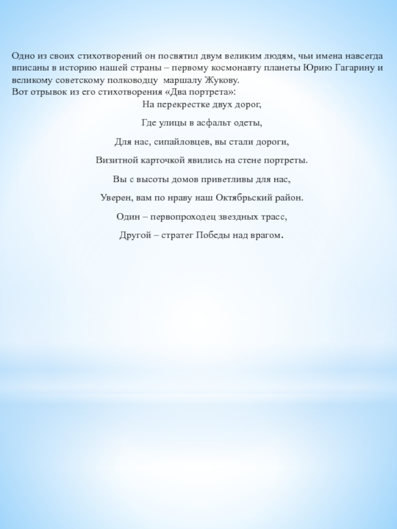 Слайд 7Одно из своих стихотворений он посвятил двум великим людям, чьи имена