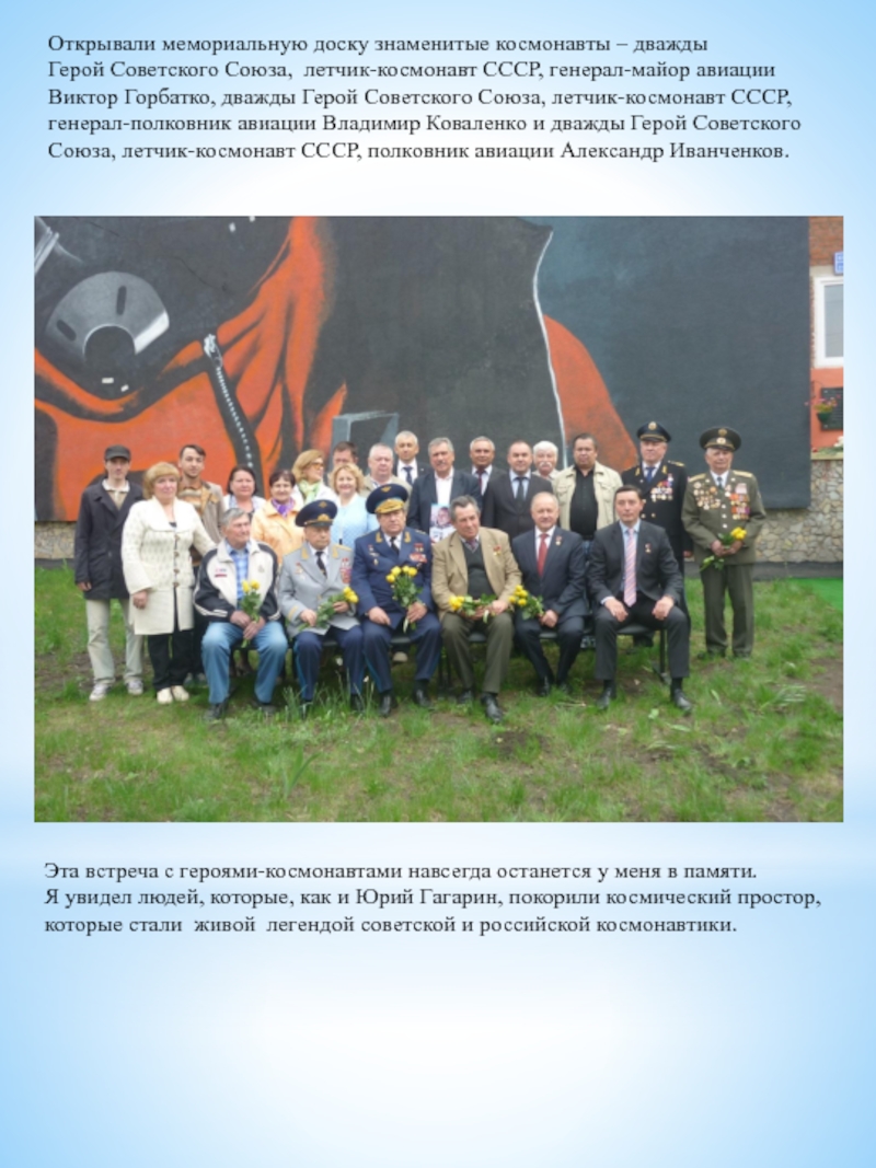 Эта встреча с героями-космонавтами навсегда останется у меня в памяти.