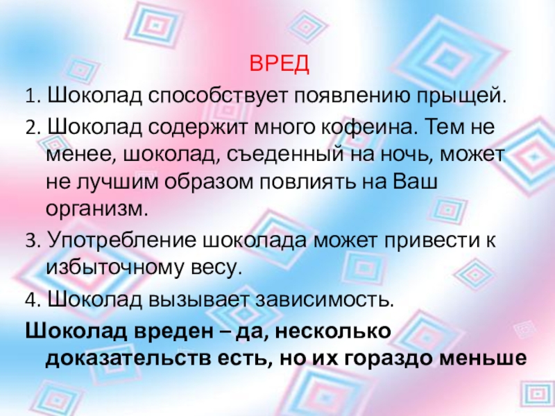 Шоколад вреден – да, несколько доказательств есть, но их гораздо меньше