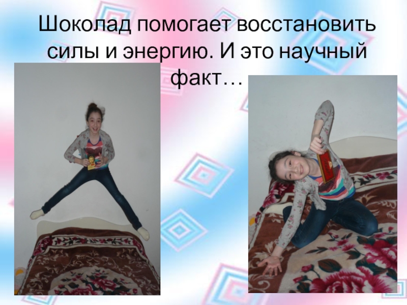 Слайд 23Шоколад помогает восстановить силы и энергию. И это научный факт…