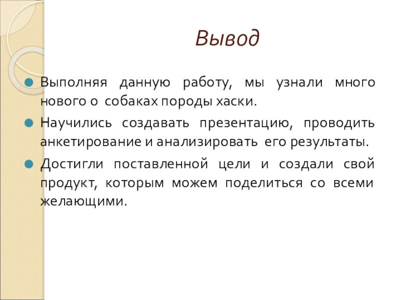 Выполняя данную работу, мы узнали много нового о собаках породы хаски.