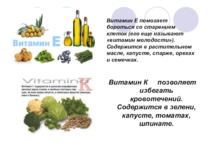 Слайд 10Витамин Е помогает бороться со старением клеток (его еще называют «витамин