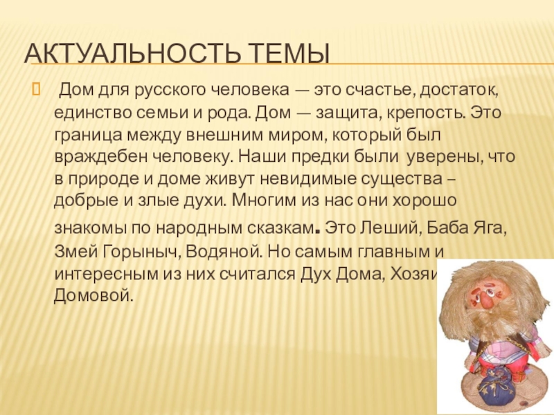 Образ-маленький старичок, похожий лицом на главу семьи, живет в домах у хороших семей.