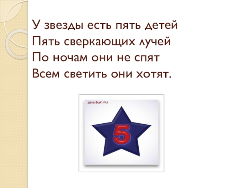Слайд 3У звезды есть пять детей Пять сверкающих лучей По ночам они не спят Всем