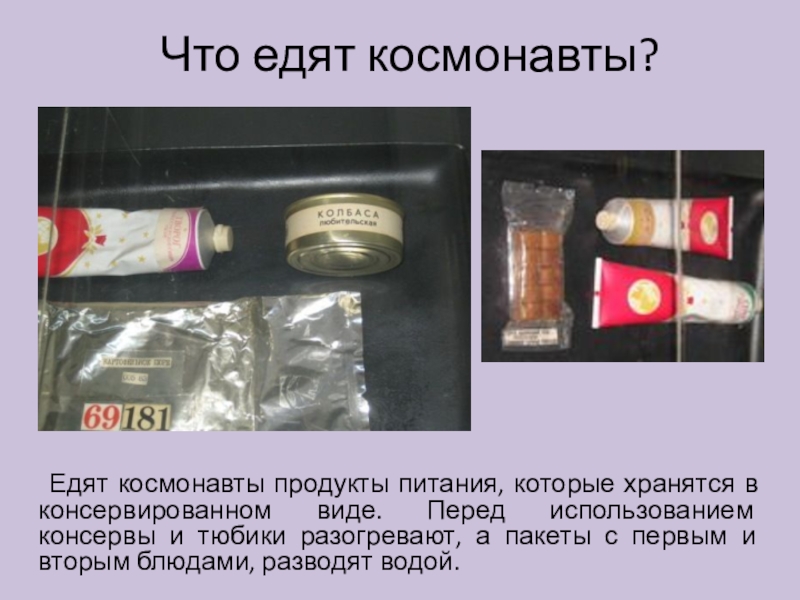 в консервированном виде. Перед использованием консервы и тюбики разогревают, а пакеты с первым и вторым блюдами, разводят водой.