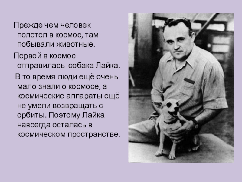 Слайд 6 Прежде чем человек полетел в космос, там побывали животные.