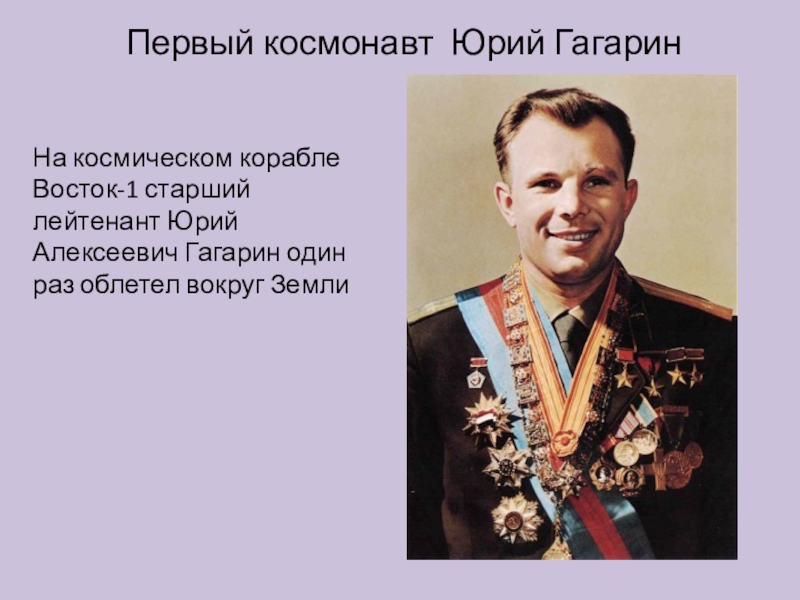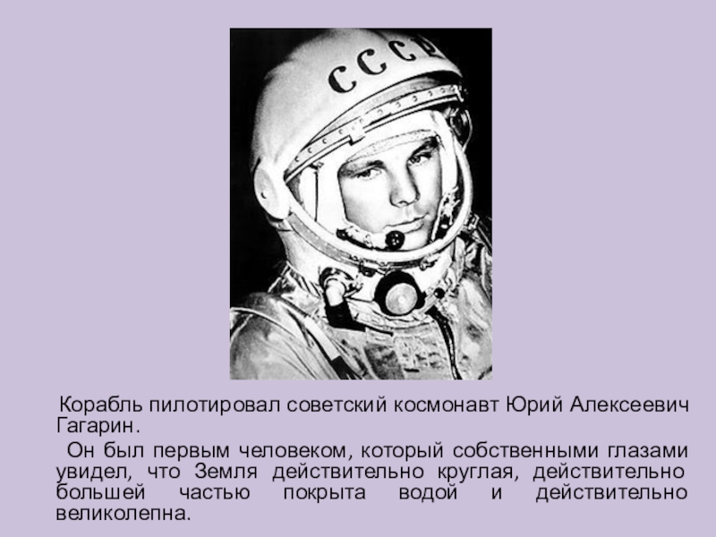 Слайд 10 Корабль пилотировал советский космонавт Юрий Алексеевич Гагарин.