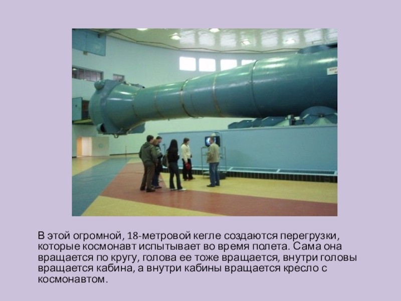 Слайд 13 В этой огромной, 18-метровой кегле создаются перегрузки, которые