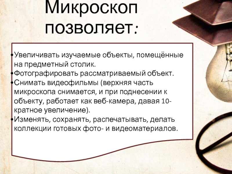 Это сайт презентаций, где можно хранить и обмениваться своими презентациями, докладами, проектами, шаблонами в формате PowerPoint с другими пользователями. Мы помогаем школьникам, студентам, учителям, преподавателям хранить и обмениваться учебными материалами.