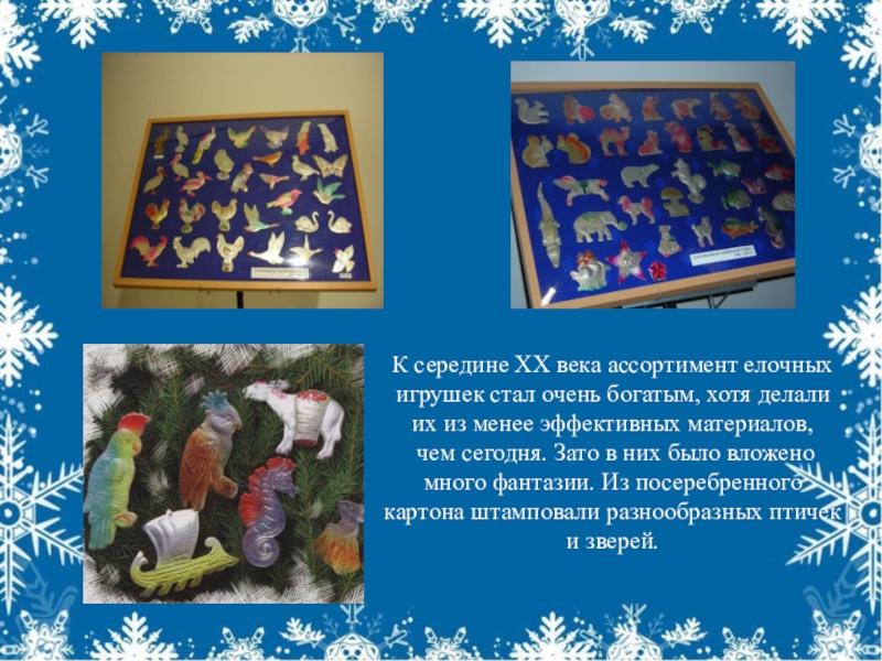 Слайд 21К середине XX века ассортимент елочных игрушек стал очень богатым, хотя