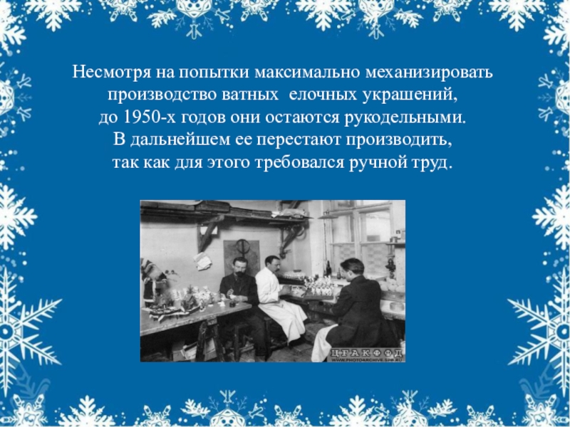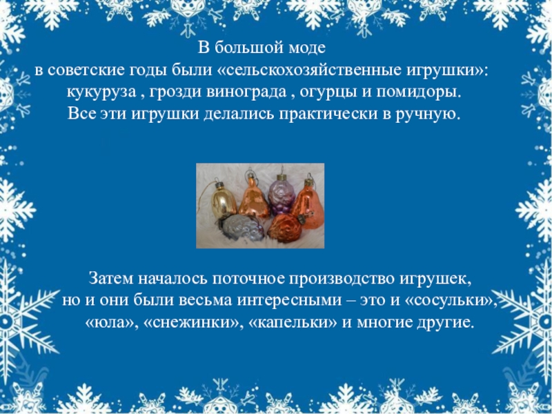 Слайд 33 Сегодня в производстве елочных украшений наблюдается отчасти