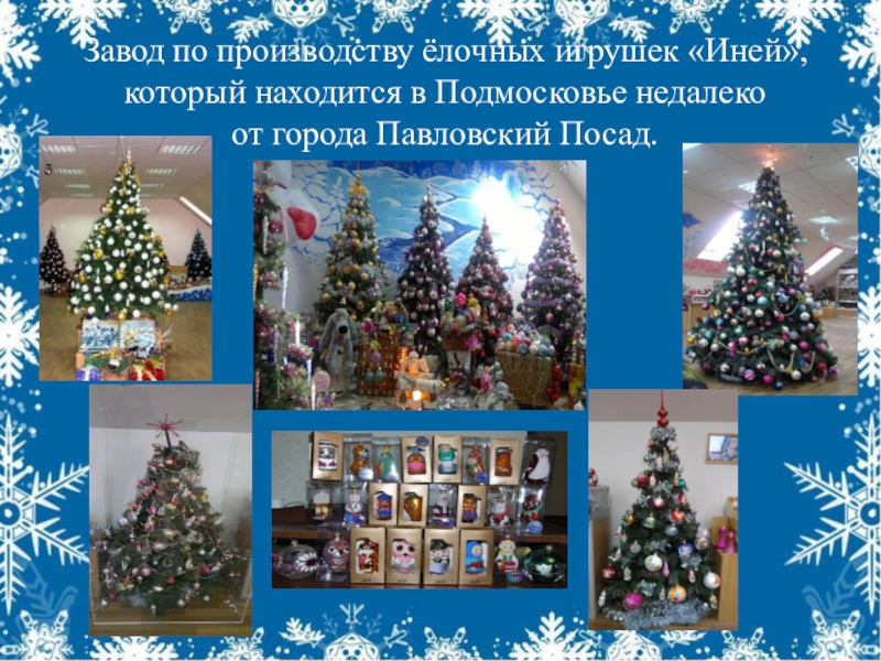 Слайд 43Завод по производству ёлочных игрушек «Иней», который находится в Подмосковье недалеко