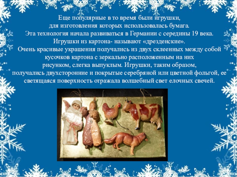 чем сегодня. Зато в них было вложено много фантазии. Из посеребренного картона штамповали разнообразных птичек и зверей.