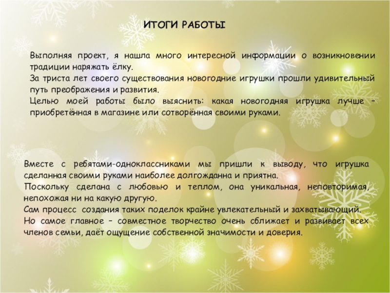 Целью моей работы было выяснить: какая новогодняя игрушка лучше – приобретённая в магазине или сотворённая своими руками.