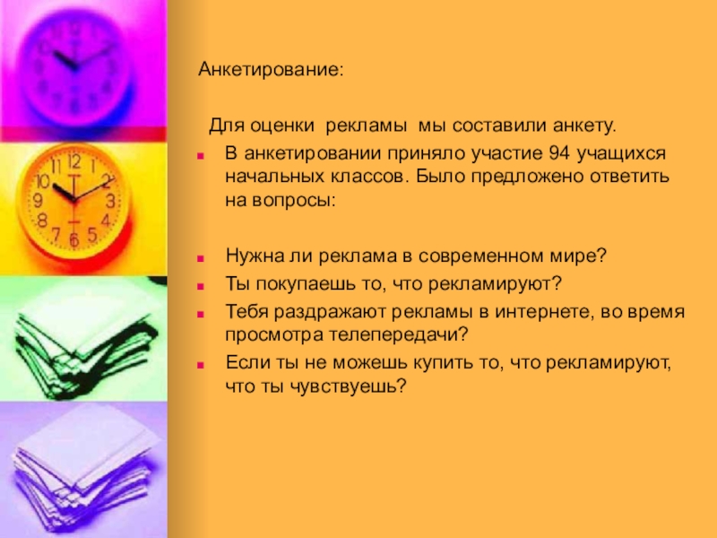 Для оценки рекламы мы составили анкету.