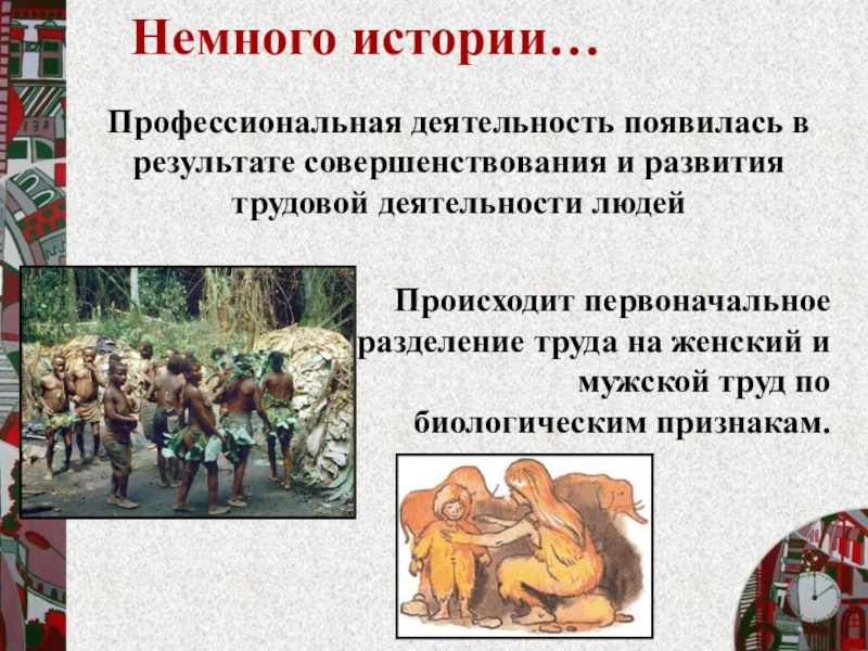 Происходит первоначальное разделение труда на женский и мужской труд по биологическим признакам.