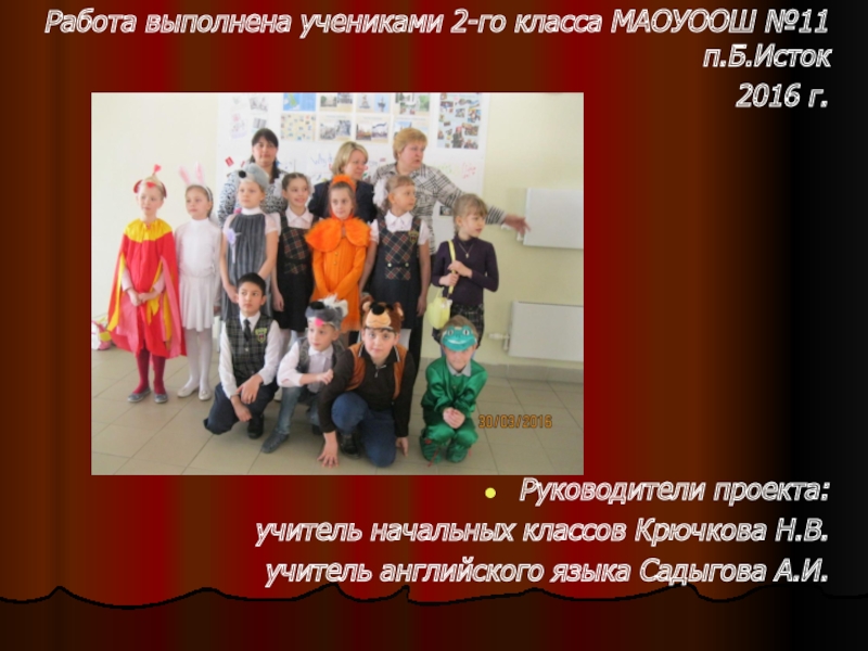 Работа выполнена учениками 2-го класса МАОУООШ №11 п.Б.Исток 2016 г.Руководители проекта: