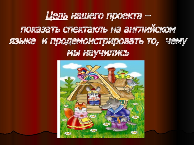Цель нашего проекта – показать спектакль на английском языке и продемонстрировать то, чему мы научились