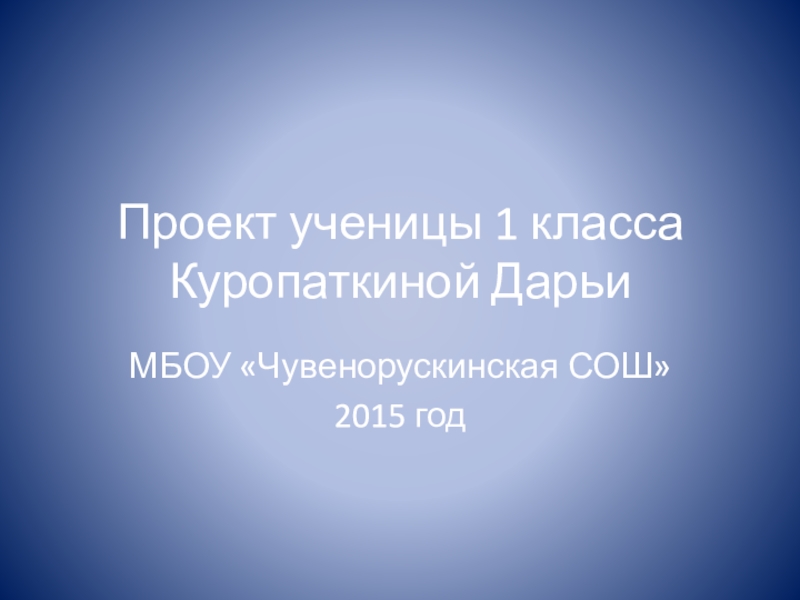 Проект ученицы 1 класса Куропаткиной ДарьиМБОУ «Чувенорускинская СОШ»2015 год
