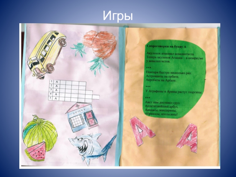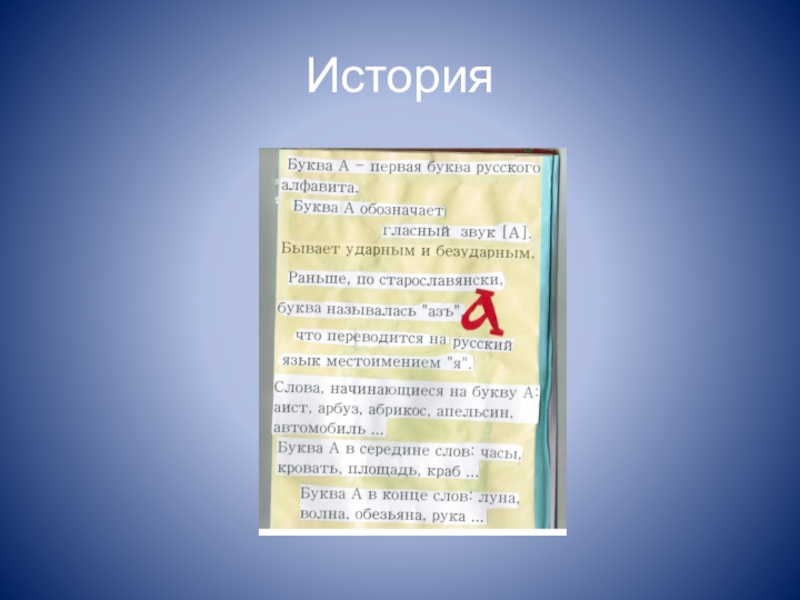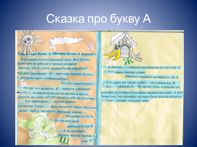 Презентация, доклад на тему Проектная работа ученика по русскому языку 1 класс Буквы А и а