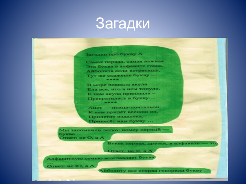 Мой проект называется «Буквы А и а».Я прочитала много стихов и загадок. Понравившиеся стихи и загадки вам