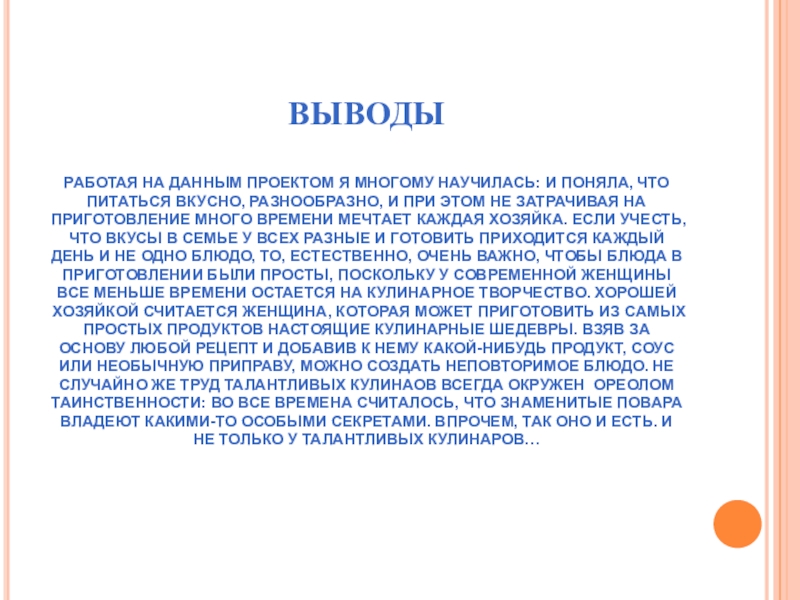 РАБОТАЯ НА ДАННЫМ ПРОЕКТОМ Я МНОГОМУ НАУЧИЛАСЬ: И ПОНЯЛА, ЧТО ПИТАТЬСЯ