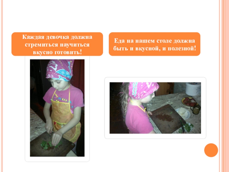 Слайд 14Каждая девочка должна стремиться научиться вкусно готовить!