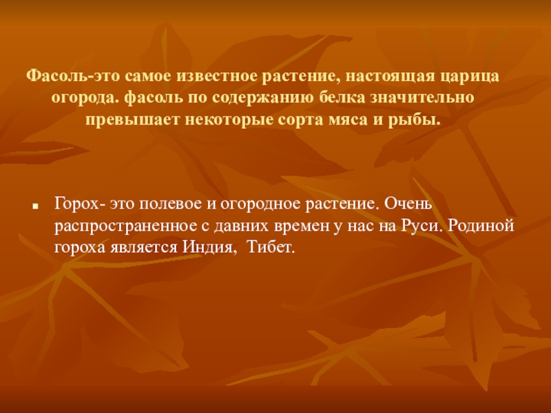 Горох- это полевое и огородное растение. Очень распространенное с давних времен у нас на Руси. Родиной гороха является Индия, Тибет.