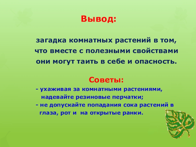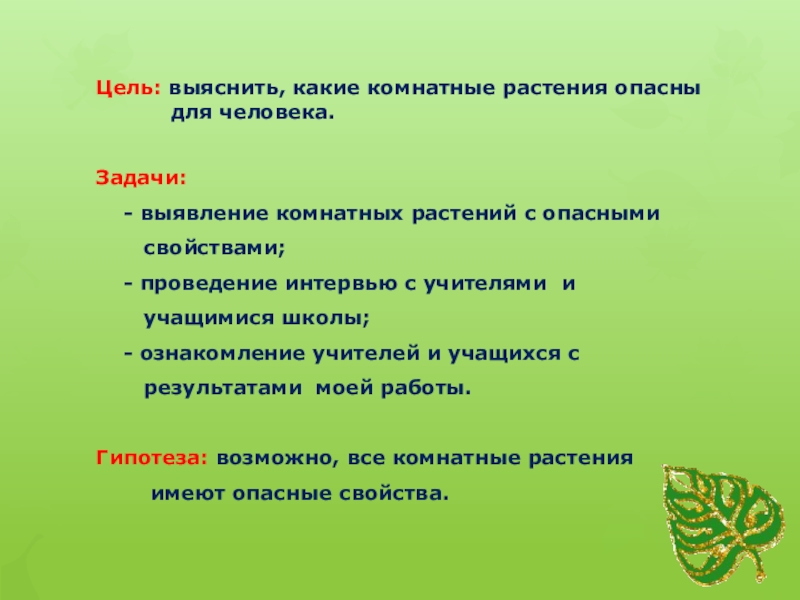 - выявление комнатных растений с опасными