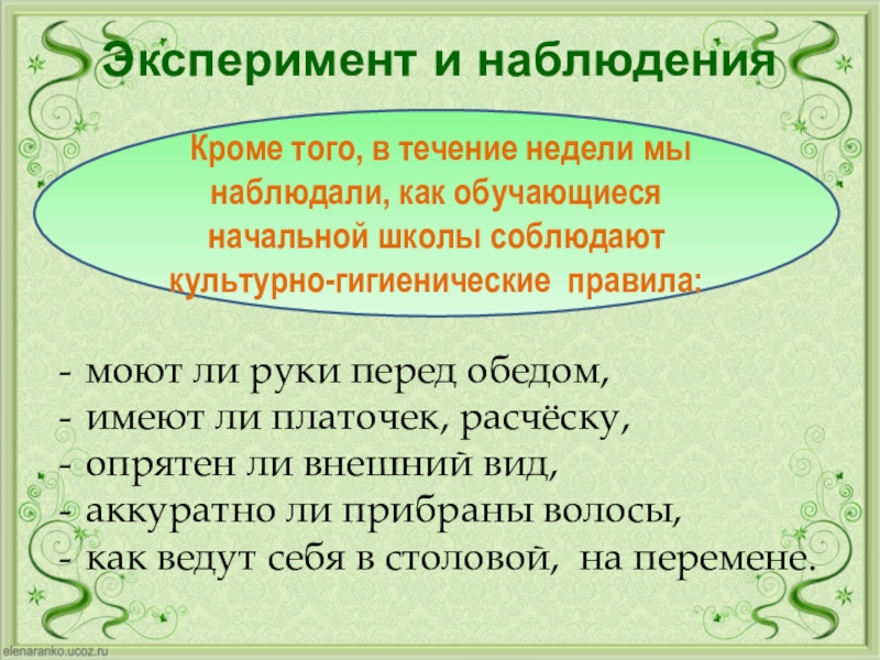 Кроме того, в течение недели мы наблюдали, как обучающиеся начальной школы соблюдают культурно-гигиенические правила: