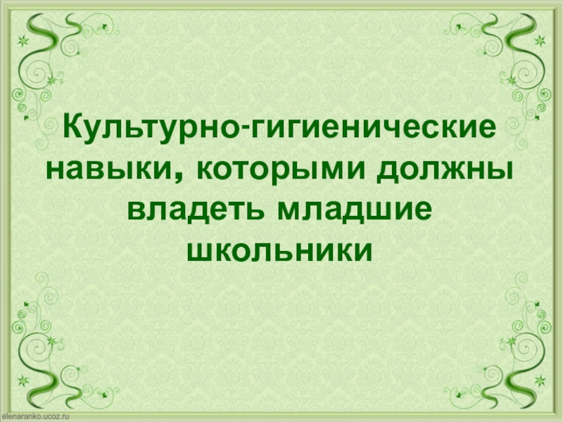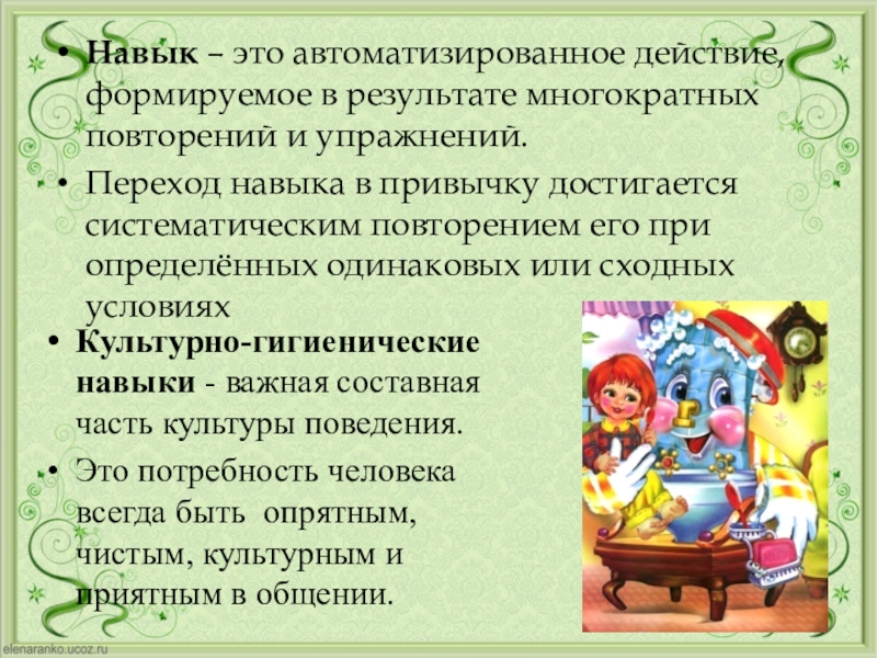 Культурно-гигиенические навыки - важная составная часть культуры поведения.