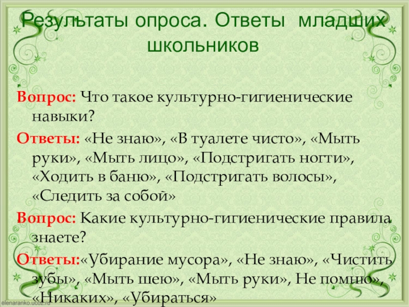 Доказать, что младшие школьники знают культурно-гигиенические правила, владеют необходимыми культурно-гигиеническими навыками.