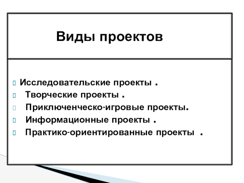Виды проектов