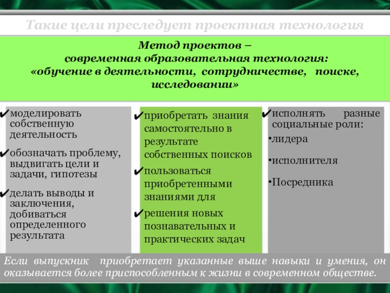 Если выпускник приобретает указанные выше навыки и умения, он оказывается более приспособленным к жизни в современном обществе.