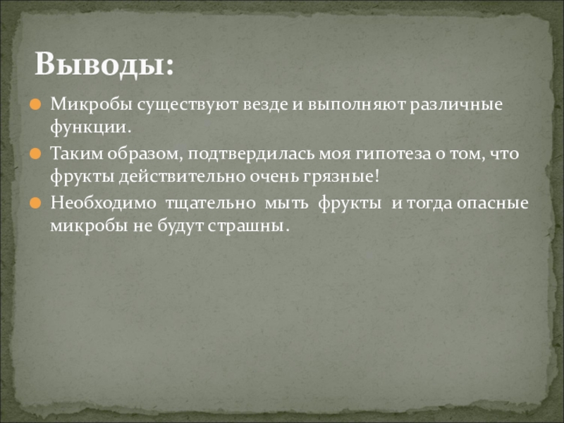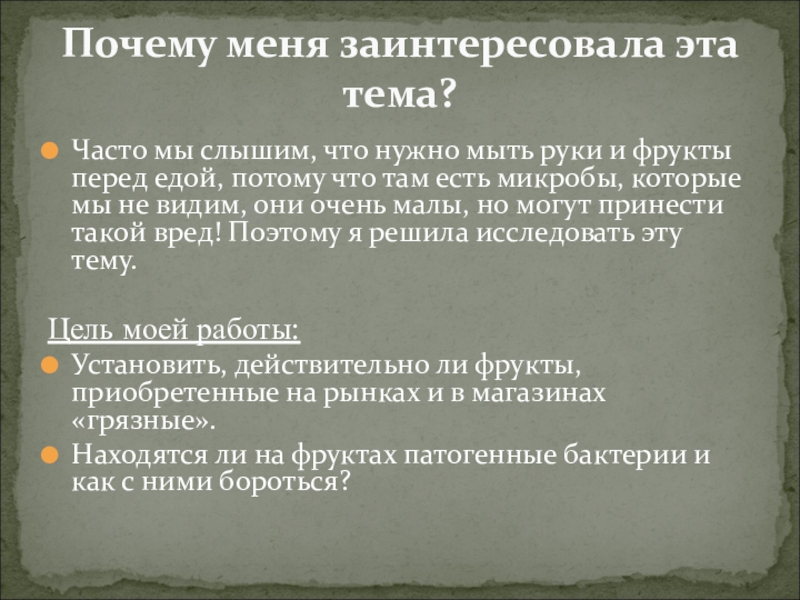 потому что там есть микробы, которые мы не видим, они очень малы, но могут принести такой вред! Поэтому я решила исследовать эту тему.