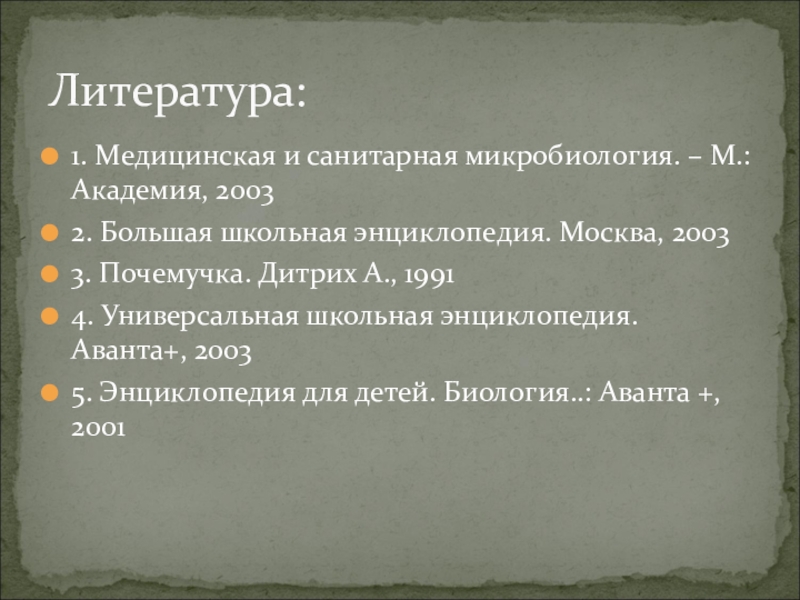Слайд 271. Медицинская и санитарная микробиология. – М.: Академия, 2003