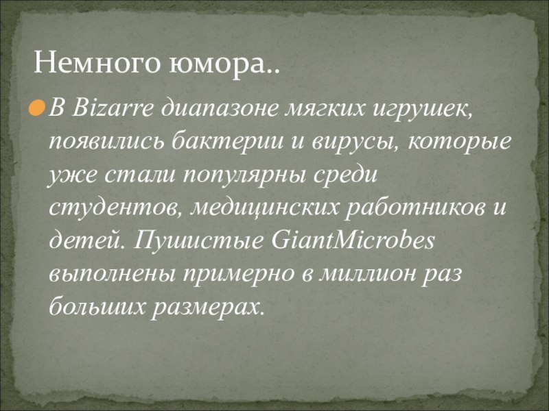 уже стали популярны среди студентов, медицинских работников и детей. Пушистые GiantMicrobes выполнены примерно в миллион раз больших размерах.